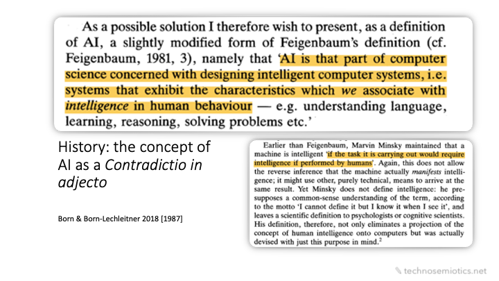As seen in the proposal, McCarthy and colleagues propose that they can make considerable progress on AI, working with a few dedicated researchers over the summer. Now, 70 years later, significant advancements have been made, although maybe not quite as far as they imagined. However, the discursive hopes and high expectations have remained the same. As we will see, this discursive projection of machines as replacement for humans is quite persistent throughout history, and dates back several hundred, if not thousands of years.